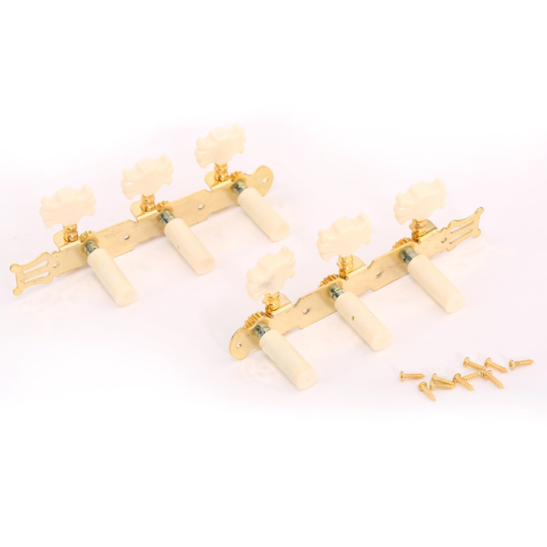 Set van 6 stemmechanieken voor de klassieke gitaar met gouden hardware en vlinderknoppen (doorsnee 9,1 mm)